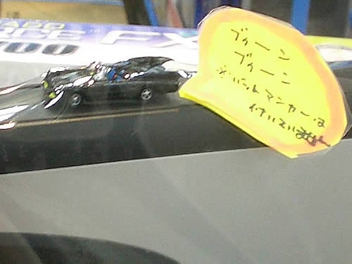 作りがあまいが←この価格なんでゆるしてください見本の上には「バットマンカー」まで用意されていたのでアキバらしいオモシイPOPだが、「バットマンカーは付いておりません」とのPOPもちゃんと取り付けられていた。価格はたぶん2980円でUSB2.0対応3.5インチHDD用ケースとしては安いようで、フェイスではすでに土曜日?日曜日?で完売していた。