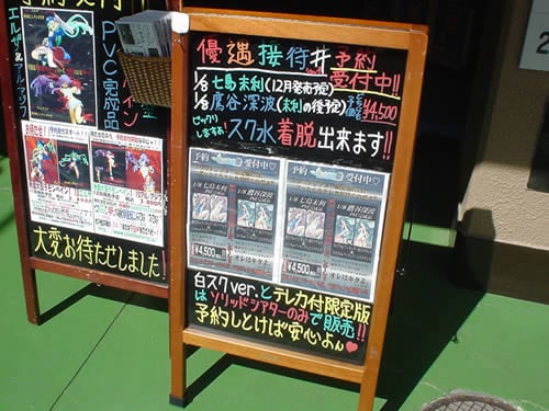 発売日はサイトでは2005年2月と3月となっているが、看板では七島末利フィギュアは12月となっていた。