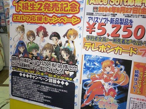 8月27日に発売になるエロゲも数多いが、ランス 6 ~ゼス崩壊~の広告がヤマギワソフト アニメ館の壁面を飾っている。ソフマップ各店でのランキングでランス6は、オーガストファンBOXや下級生2に負けているので目につきやすいところに広告があるのは良いことだろう。