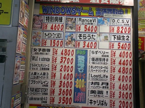 29日にお伝えした8月27日新作エロゲの買取価格の記事は、ページを見た人が結構多かったので、先週につづいて今週もソフマップ本店とトレーダー本店の店頭にあるエロゲ買取価格表を取り上げてみたが、オーガストファンBOXは、ソフマップ本店、トレーダー本店ともに店頭での買取価格表示がなくなっていた。
