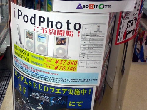 ITmediaによるとAppleのオンラインストアでApple製品に「自動的に満点」が与えられるように設定するなど自画自賛しているAppleのiPod新モデルiPod Photoは、唐突な印象もあるがアキバで発売が始まっていた。