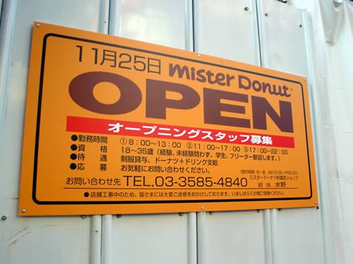 akiba2Go!でも伝えられているがヤマギワソフト館の火事で閉店し現在工事中のミスタードーナツ秋葉原ショップが11月25日にオープンする看板を出し、オープニングスタッフを募集している。2月10日の火災からヤマギワソフト館は8月13日に営業再開しているが、ミスドは9ヶ月半ぶりの復活ということになる