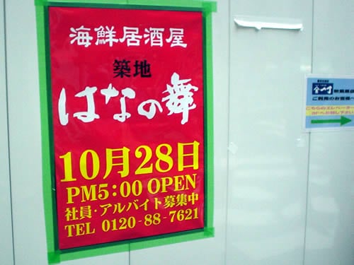 先日T-ZONE.AKIBA PLACE跡地でエクセルシオールカフェの工事が始まったが、エクセルシオールカフェの工事現場を覆っている壁に「海鮮居酒屋 築地